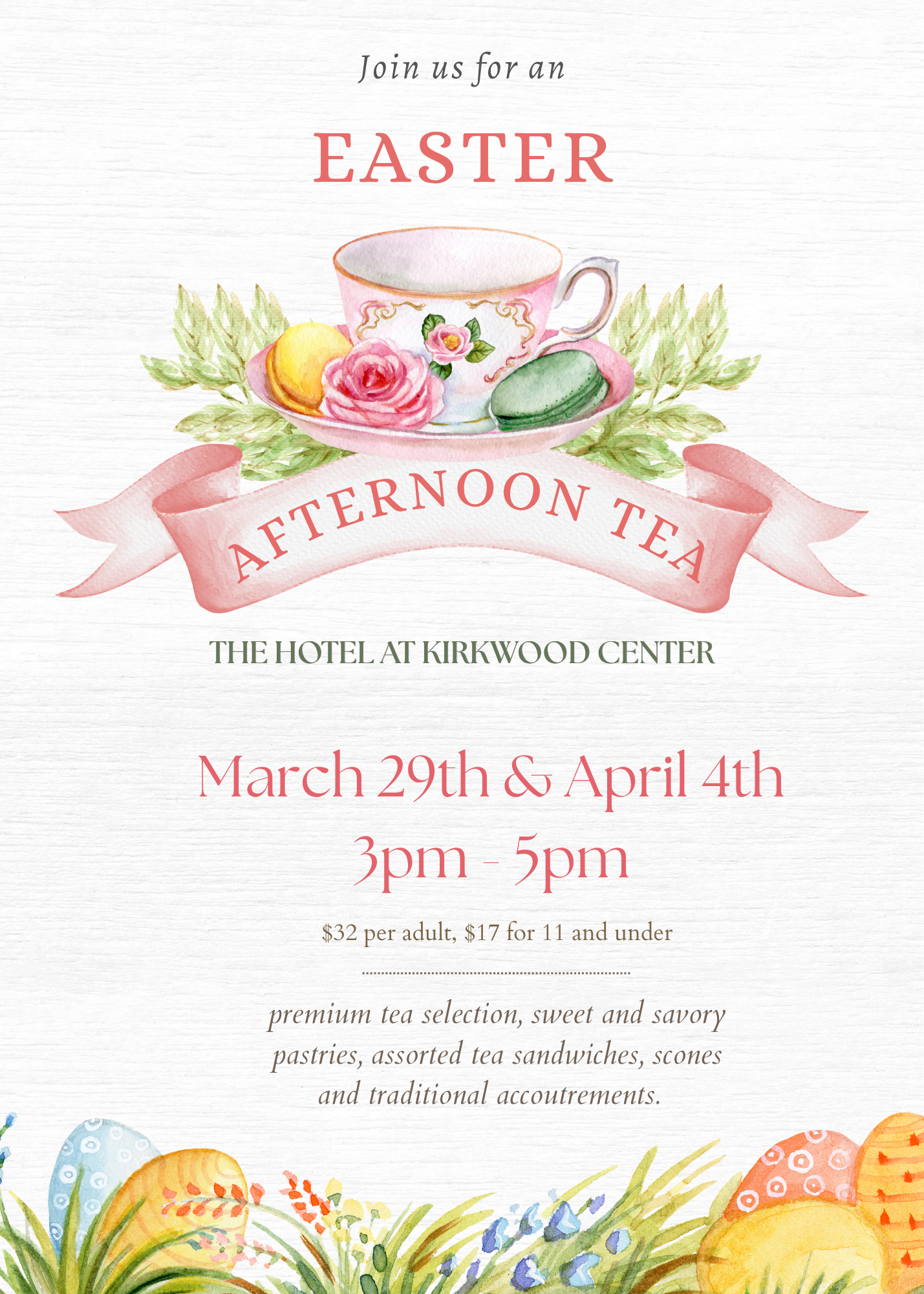 Make ReservationsEaster Tea Experiences March 29 & April 4